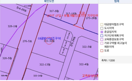 - [국토의 계획 및 이용에 관한 법률]에 따른 지역.지구 등: 도시지역, 준 공업지역, 도로(접합)
